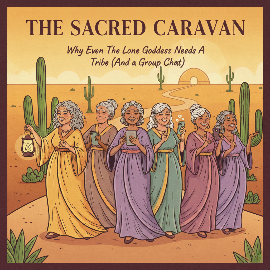Think of it this way: Even a desert queen needs a crew to tell her when her camels are wandering off or if she’s accidentally started talking to a mirage. As we age, this caravan becomes our witness. Even for the most introverted Goddess, having a tribe is the ultimate act of self-preservation.